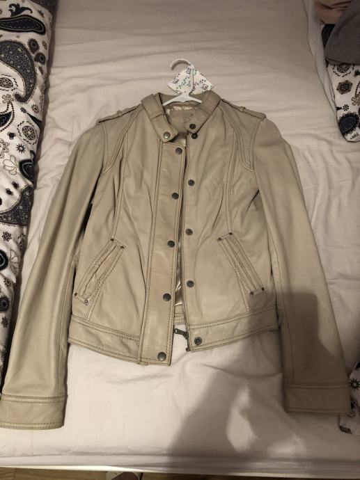 Stradivarius kozna jakna s/xs, krem boja, nikada noseno, prava koza