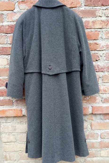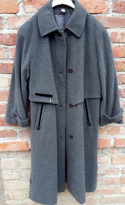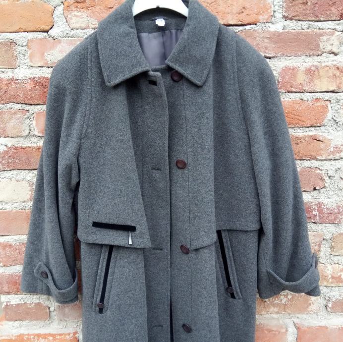 prekrasan sivi talijanski dugi kaput od vune i kašmira, sa puno detalja, jako lagan i ugodan za nošenje, veličina 48(22), materijal : 70% virgin vuna, 20% nylon, 1o % kašmir--podstava poliester, sa tankim naramenicama i rezervnim gumbima, u odličnom stanju, kao nov, vrijedi puno više od tražene cijene