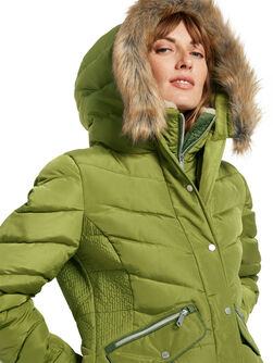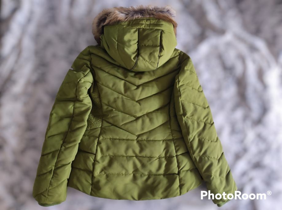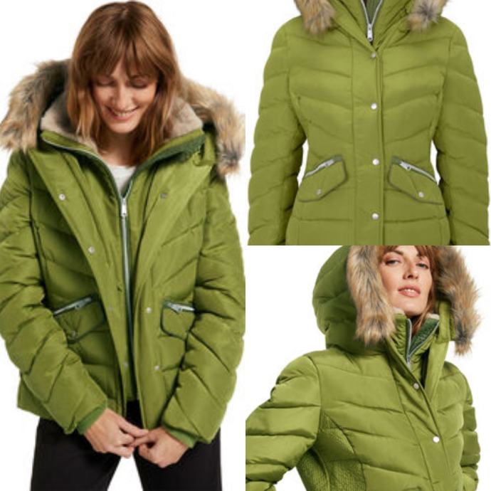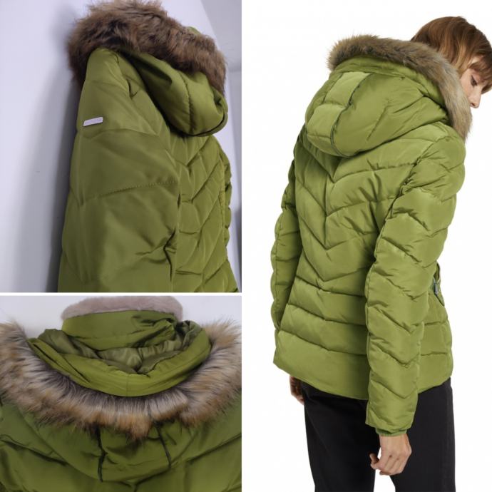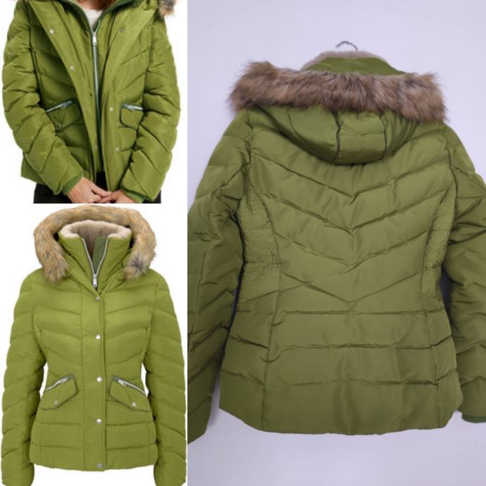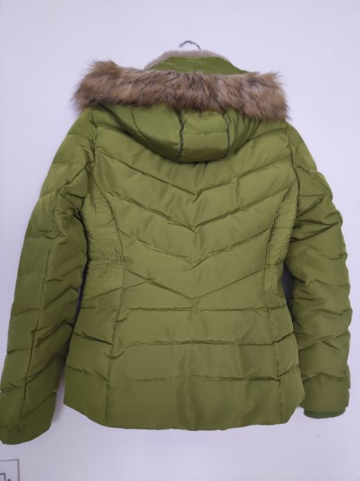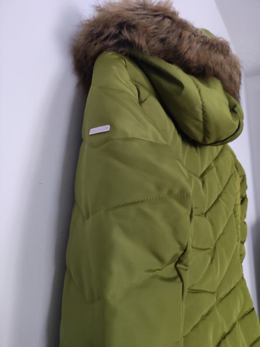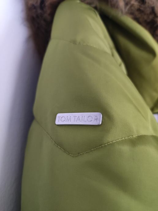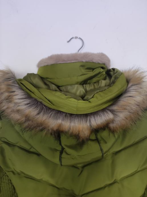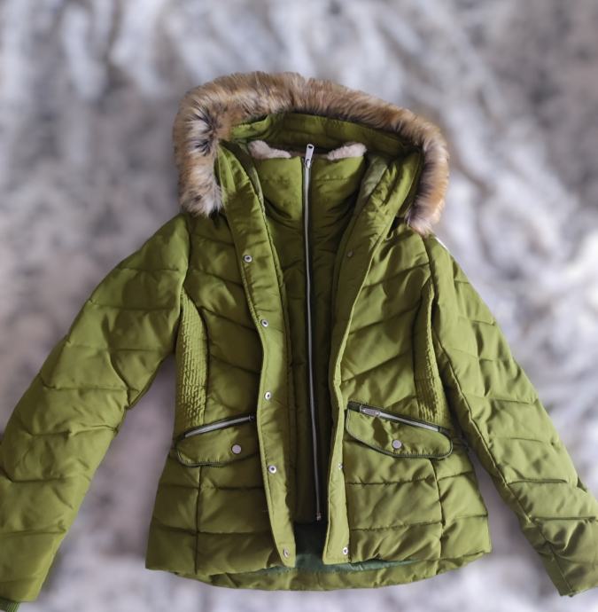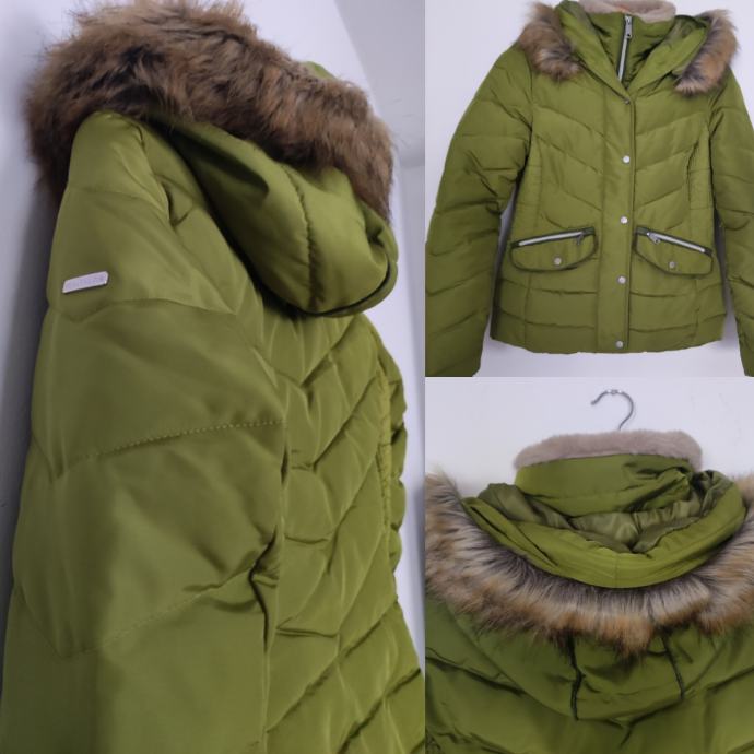 Tom Tailor zenska strukirana jakna, vel xs, boje limete. Duplo kopcanje, na cif i drukere, 2 dupla futrana dzepa (na cif i na druker), odvojiva bundica na kapuljaci. Cijena 40€.