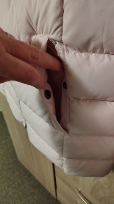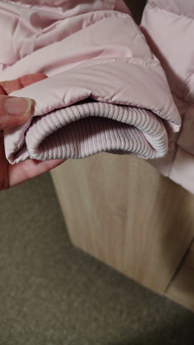Nova jakna, bez papirnate etikete, samo isprobana. Tijesna mi, lijepa baby roza boja. Blago strukirana, punjena perjem i jako topla.