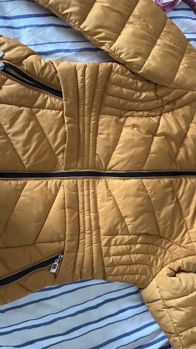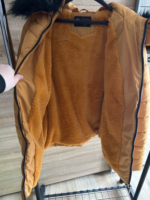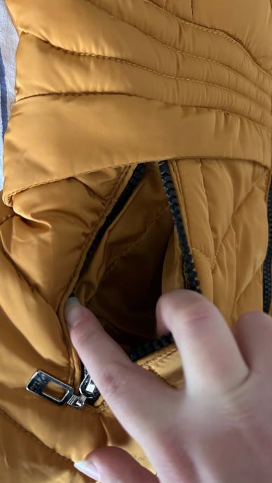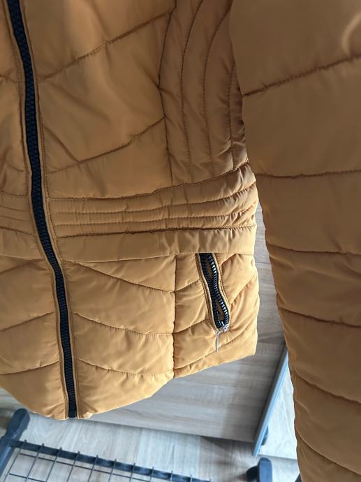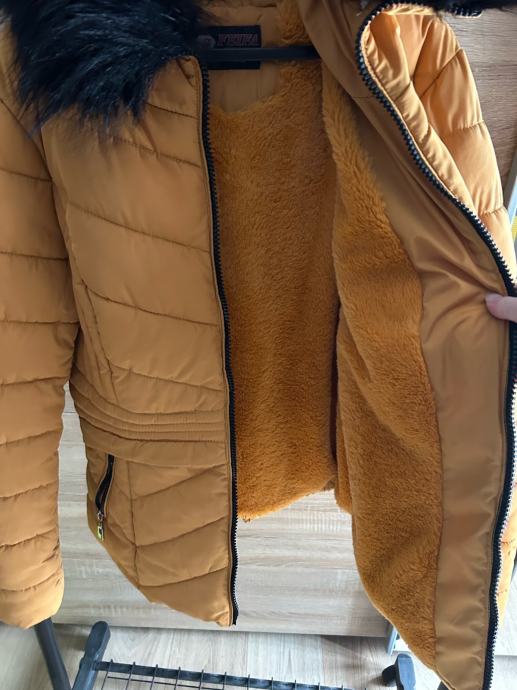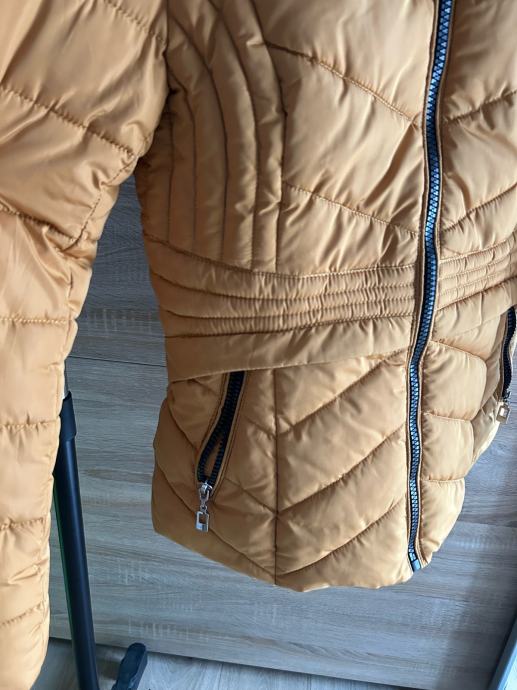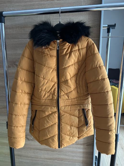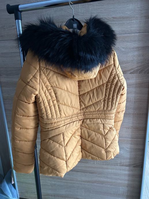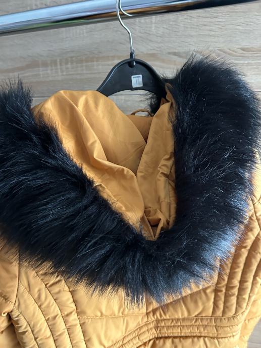 Prodajem elegantnu zimsku jaknu boje senfa s crnim krznenim obrubom, veličine 44. Jakna je prošivena i ima praktične džepove s patentnim zatvaračima. Potpuno je nova, nikada nošena, samo bez originalne etikete.