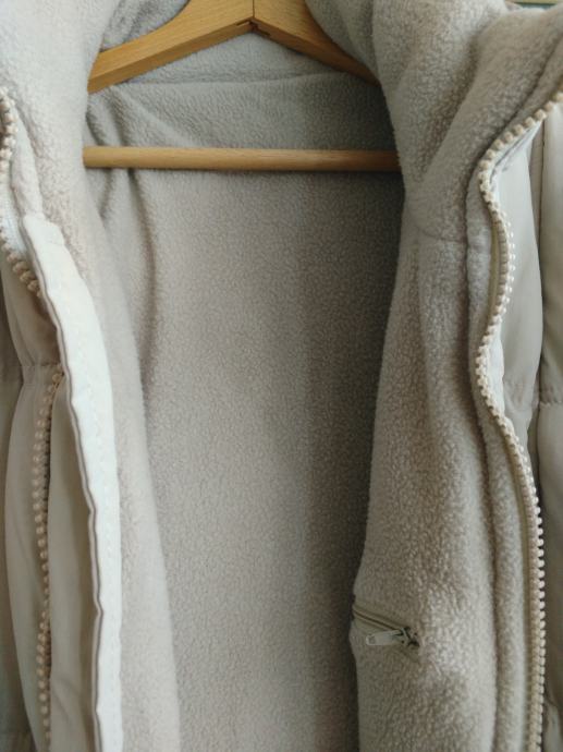 Vrlo topla zimska jakna, vel. M, deblja, bež boje, dužina cca 70 cm, širina u prsima (između pazuha) cca 50-52 cm, ima dva džepa naprijed i jedan unutrašnji džep, kapuljača se može skinuti, rukavi se mogu suziti ili proširiti (čičak), jako kratko nošena.