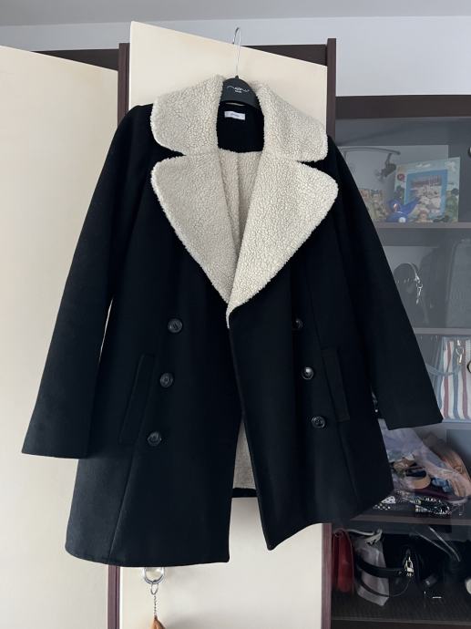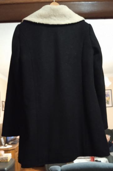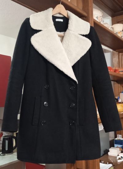 Topli kaput s runom, veličina 36, boja crna, nošen 3-4 puta, potpuno očuvan, udoban i jako topao.