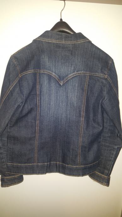 Tamni traper sa izbijeljenim dijelovima, ima elastina , strukirana, malo nošena, deklarirana kao L , ali je više M