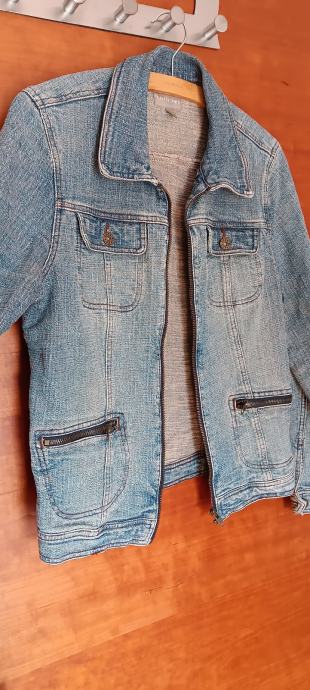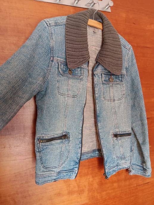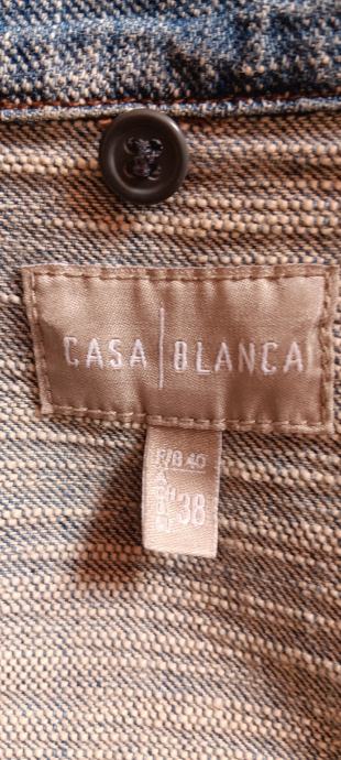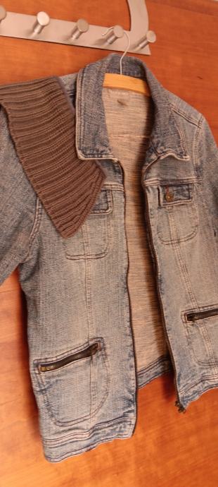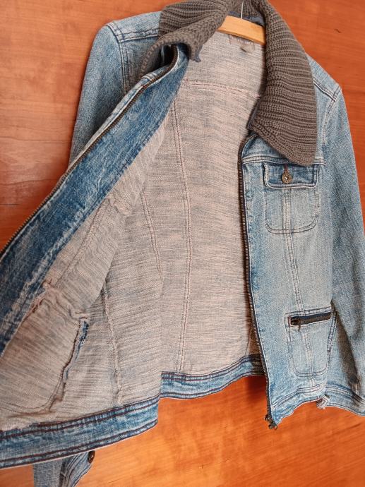 Jeans jakna od debljeg denima, isprane boje, brenda Casablanka ( Italy ). Lagano strukirana, zatvaranje na cif, 4 đžepa. Ima pletenu kragnu na gumbe, lako se skida. U odličnom stanju, bez oštećenja.