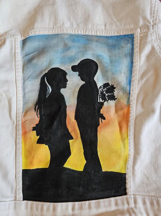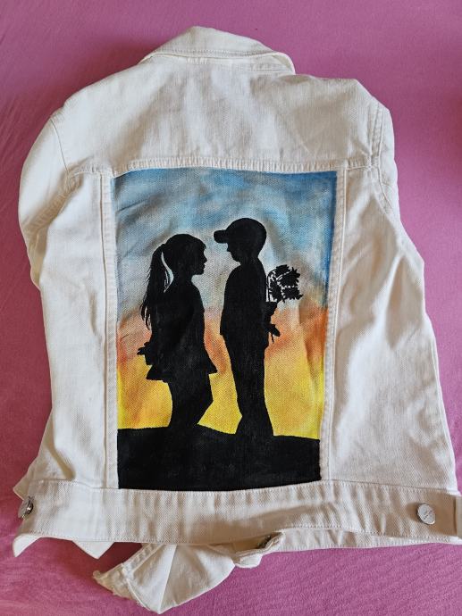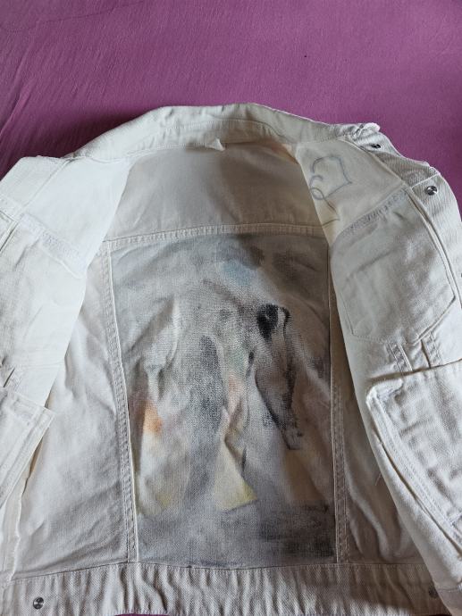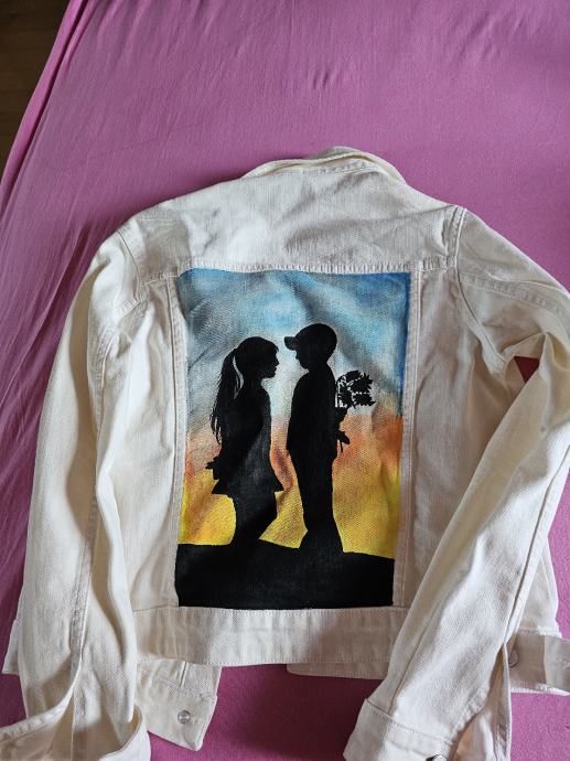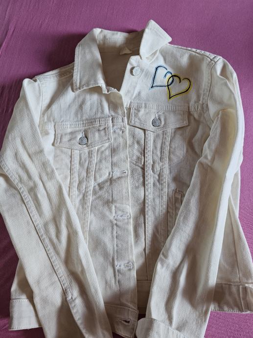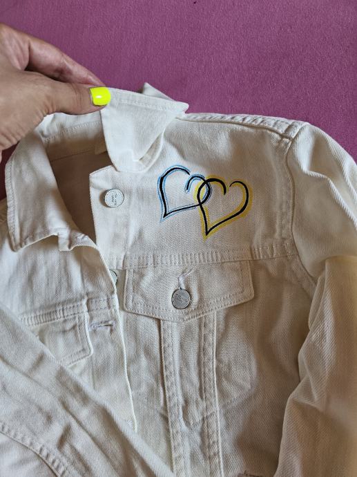 Ručno oslikana,bijela traper jakna,vel 38,nova,hrv dizajn