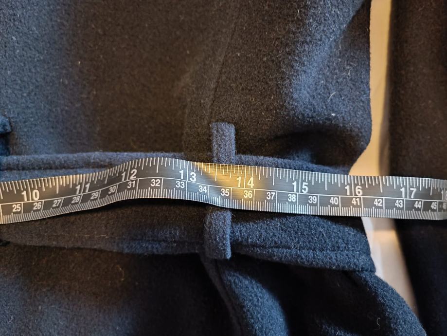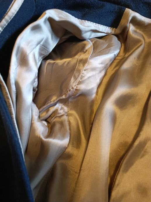 Jako dobro očuvan, s remenom u struku i oko vrata. Efektni dodaci srebrnih gumba na rukavima i na kragni. Dužine do koljena, topao i lagan za održavanje, s toplom podstavom.
