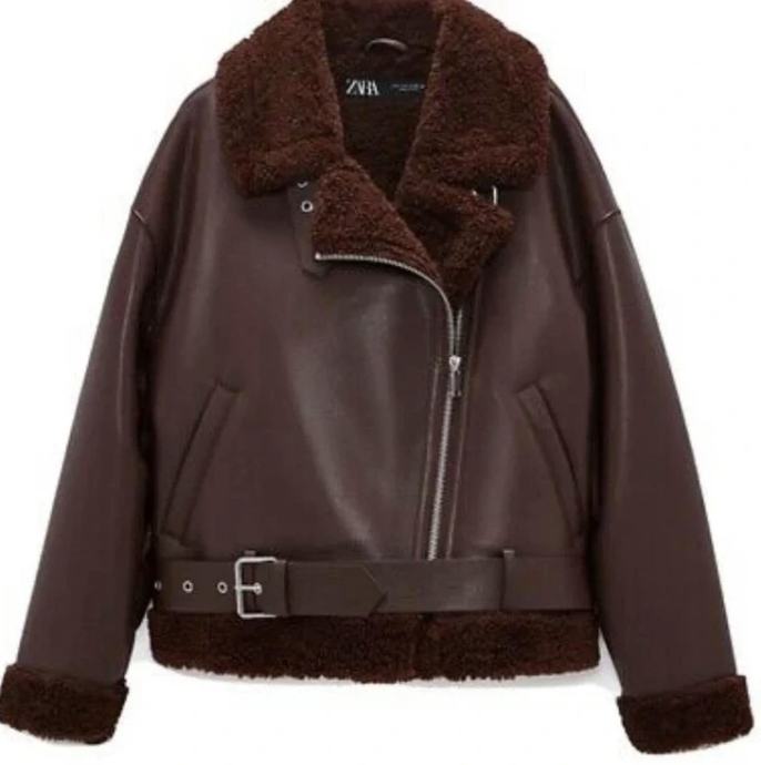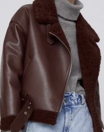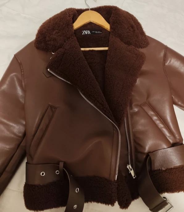 Bordo jakna, izvana umjetna koža, unutra umjetno krzno. Vel Xs, oversize. U odličnom stanju.