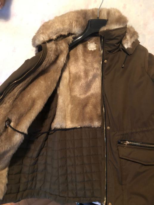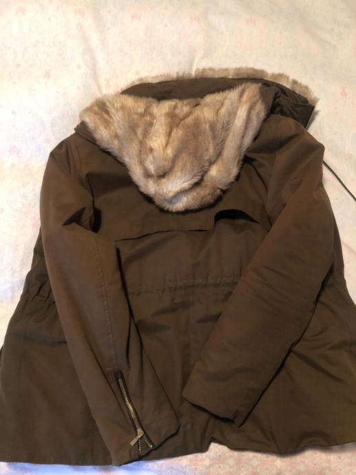 Prodajem Zara jaknu.Tamno maslinaste je boje sa dva prednja džepa,unutarnjim umjetnim dodatkom krzna i unutarnjim pojasom za reguliranje sirine jakne.Ima kapuljacu takoder sa dodatkom krzna . Jakna je nova ,nošena 2 puta te nigdje nije oštećena(vidljivo po slikama).Prodajem ju jer je ne nosim.Placena je 799kn,prodajem ju za 300kn.