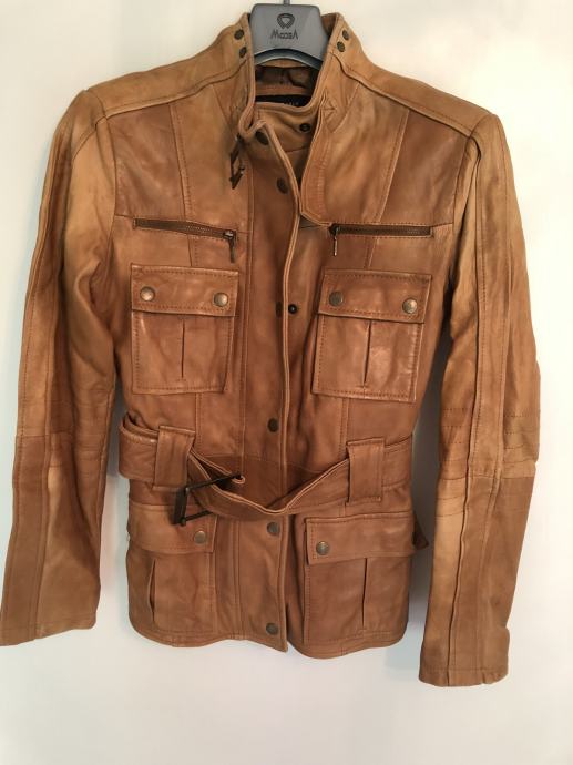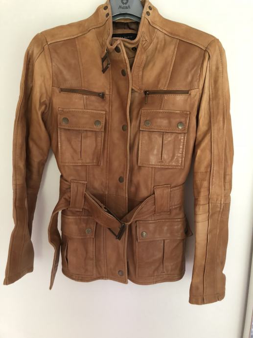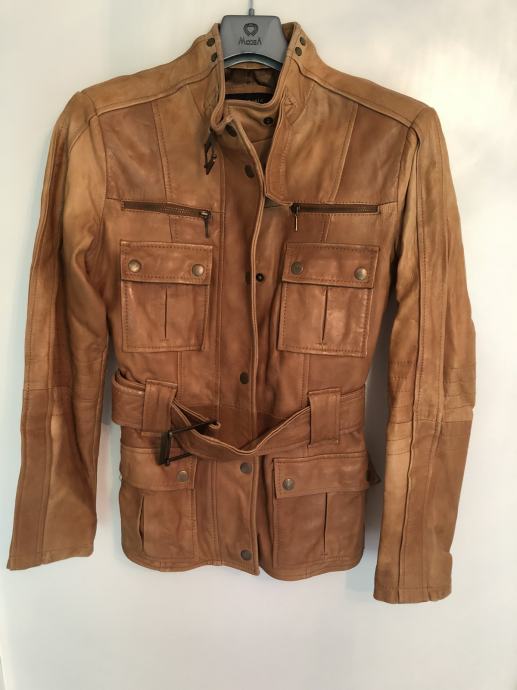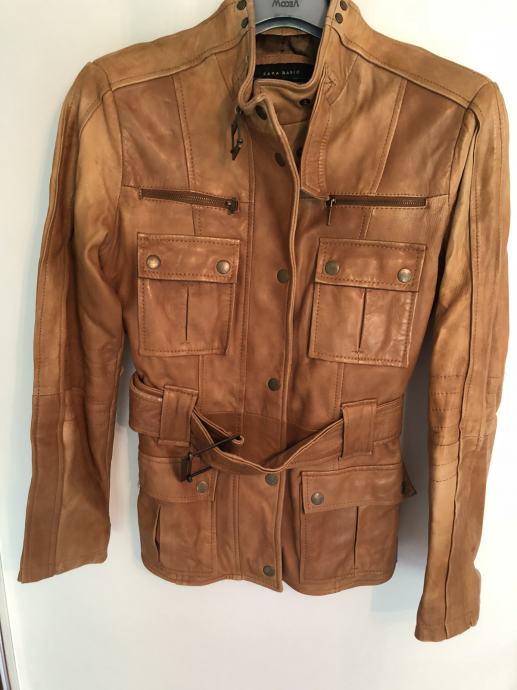 Zara kožna jakna, M velicina, prava koža, boja šampanjca, jednom nošena, moderna i efektna.