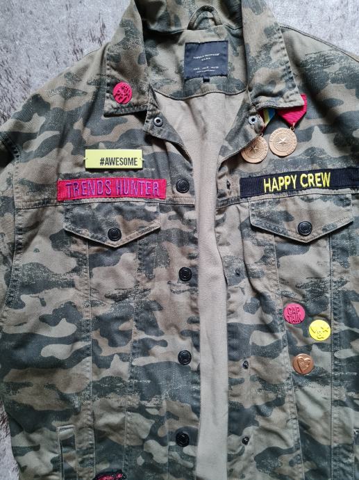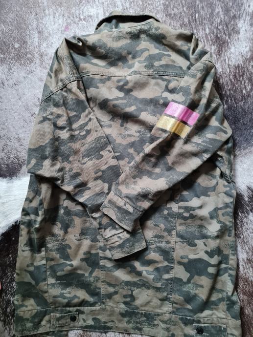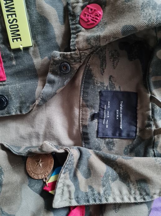 Zara parka, vel S,moze I M...komotan model...kratko nošena, sve u super stanju,osim malog vidljivog traga skinute boje,prikazano na slici