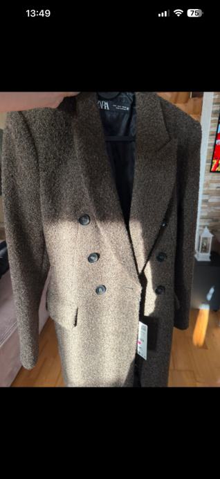 Prodajem ZARA ženski vuneni kaput, nov s etiketom, nikad nošen. Kaput je elegantnog, klasičnog kroja s duplim kopčanjem, idealan za poslovne kombinacije, ali i svakodnevno nošenje.