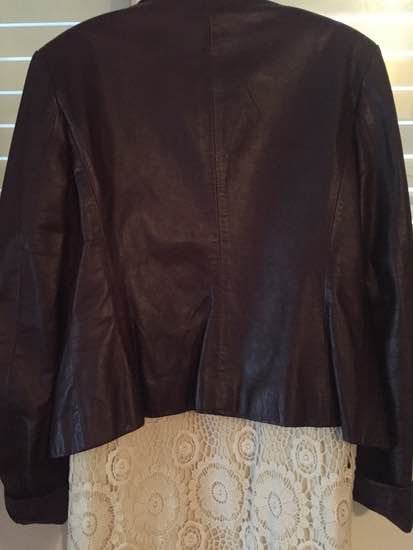 ZARA WOMAN Collection efektna kožna jakna boje vina..bordo..vrlo kvalitetna mekana koža...otraga zanimljivo efektno strukirana...zip na prednjici..2skrivena džepa...saten podstava..vel.S-M ...dekl.vel.M....novo,nenošeno!