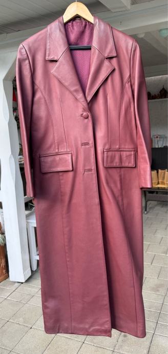 Ženska duga kožna jakna, nošena nekoliko puta, kao nova. Boja kao na fotografiji, nije crvena.