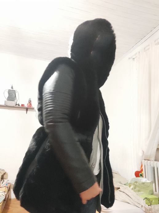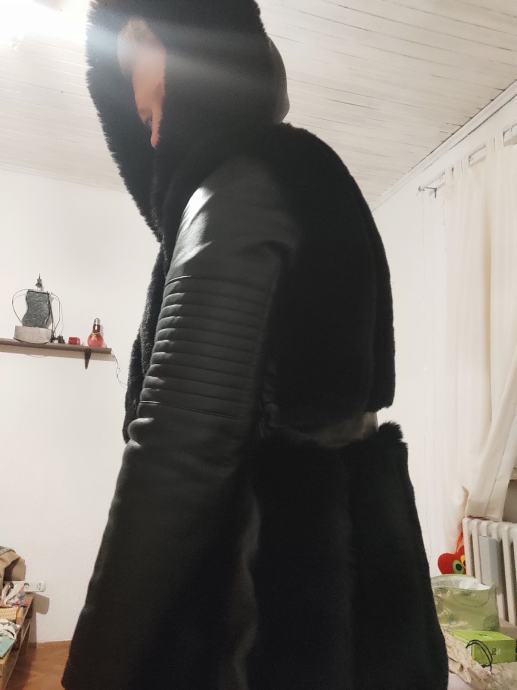 Rukavi , umjetna koža..motociklistički stil. Kapuljača dijelom krznena