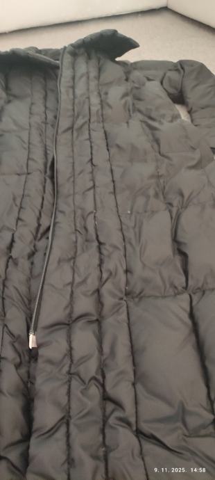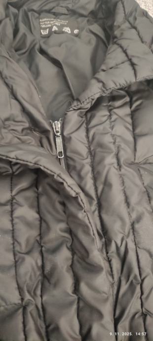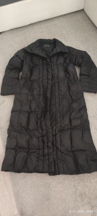 Prodajem rabljenu crnu dugu žensku jaknu veličine 38. Jakna je izrađena od poliestera i idealna za hladnije dane. Prošiveni uzorak osigurava elegantni izgled i odličnu toplinsku izolaciju.