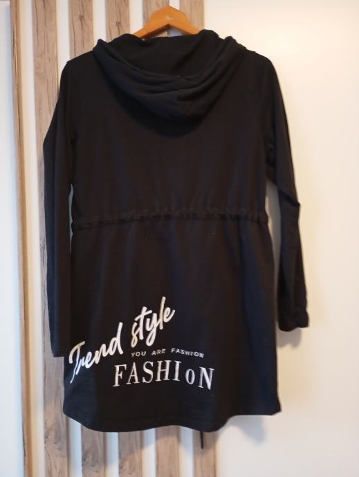 Nikad nošena jakna-duksa sa kapuljačom,prsa 50,dužina 75cm iza malo duža,pamuk,crne boje