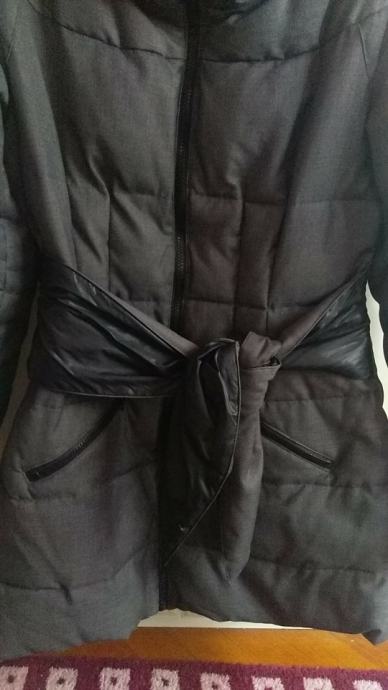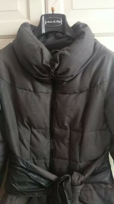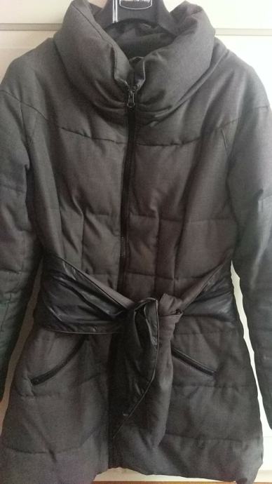Prodajem jaknu Fairly, zanimljivog kroja, vel. 38, kupljena u Modiani. Jakna je u vrlo dobrom stanju, sive boje, naglašenog struka, sa crno-sivim pojasom.