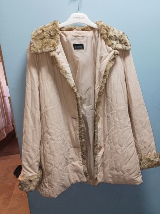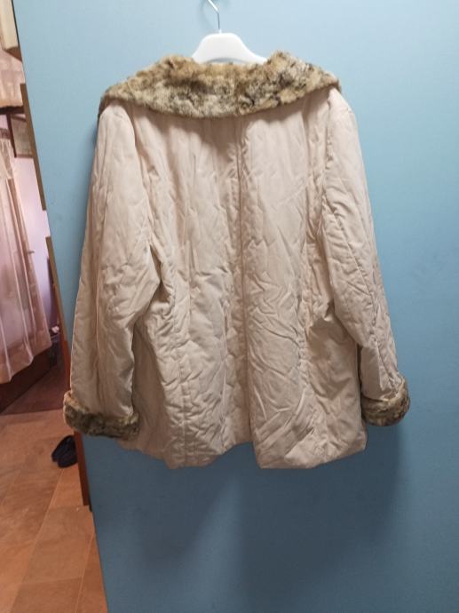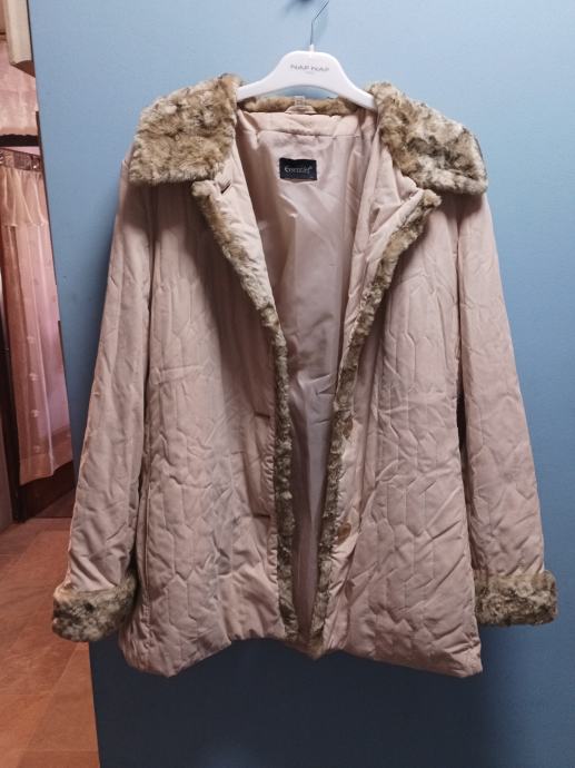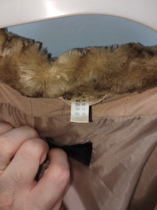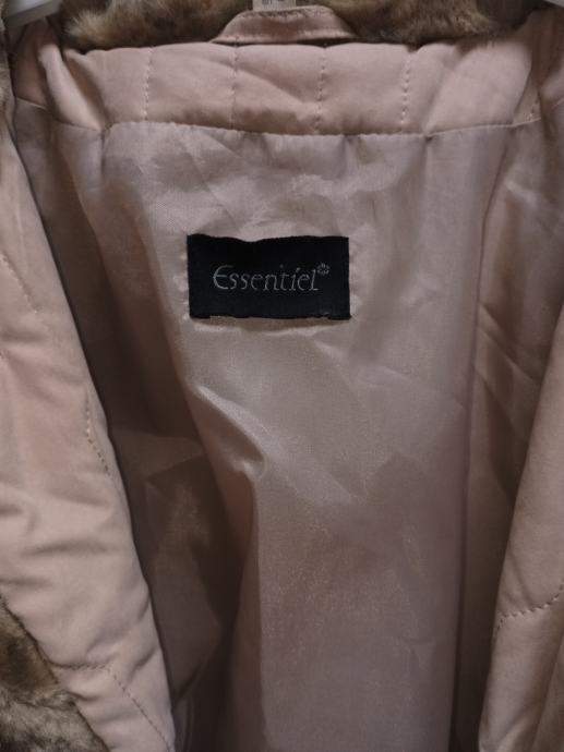 Poklanjam rabljenu žensku jaknu sa krznom marke Essentiel, veličine 44. Jakna je bež boje s dekorativnim krznom na ovratniku i manžetama. Udobna je i topla, idealna za hladnije dane.