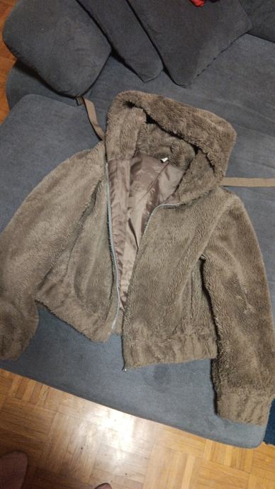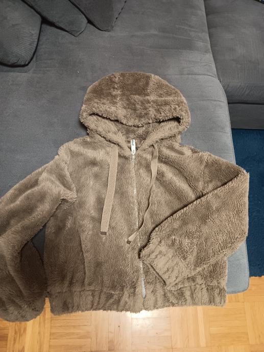 Prodajem žensku pliš jaknu u smeđoj boji, veličine 34. Radi se o kratkom kropu s kapuljačom i zatvaračem na rajsferšlus. Unutrašnjost je podstavljena glatkim materijalom, a rukavi završavaju elastičnim rubom. Mekana i ugodna za nošenje.Nije dugo nošena,topla je i očuvana.