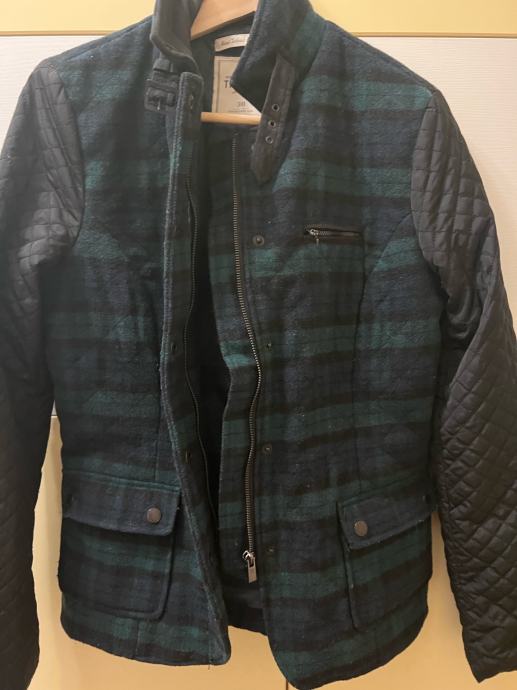 Potpuno ocuvana jakna, blago strukirana, kombinacija stofa i rukava u drugom materijalu.