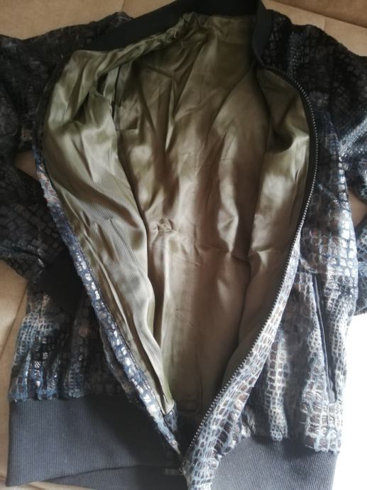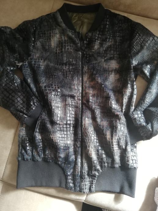 Jakna je predivna uživo, izvana mekana,kao brušena koža, presijava se.Moze se nositi s obje strane