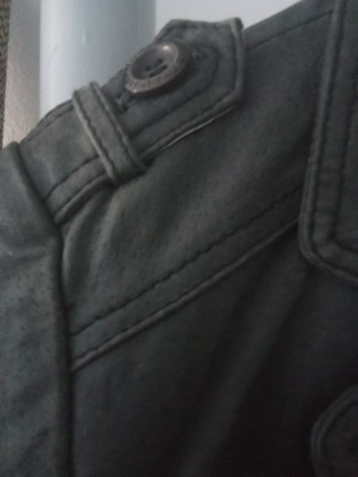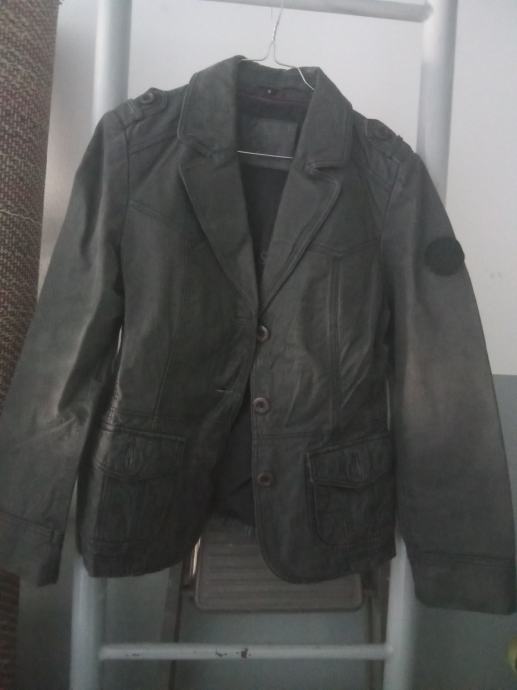 PRODAJEM ŽENSKU KOŽNU JAKNU TOM TAILOR VELIČINA M PREUZIMANJE SAMO NA ADRESI KONTAKT NA 0919775033 BOJA JE SIVA
