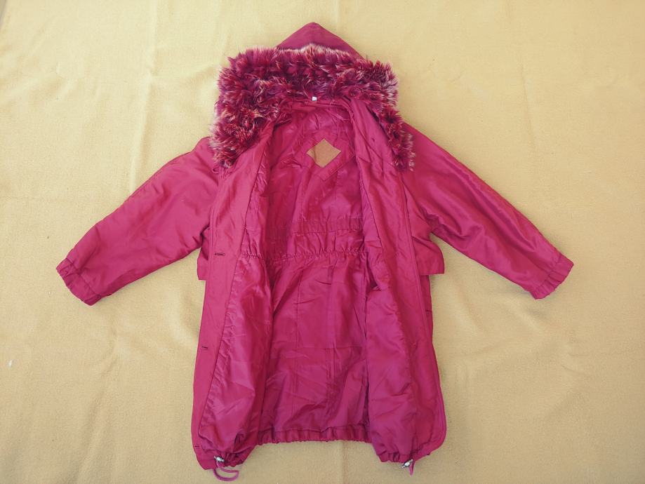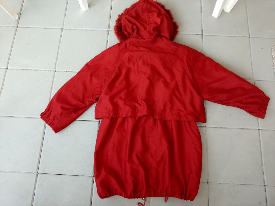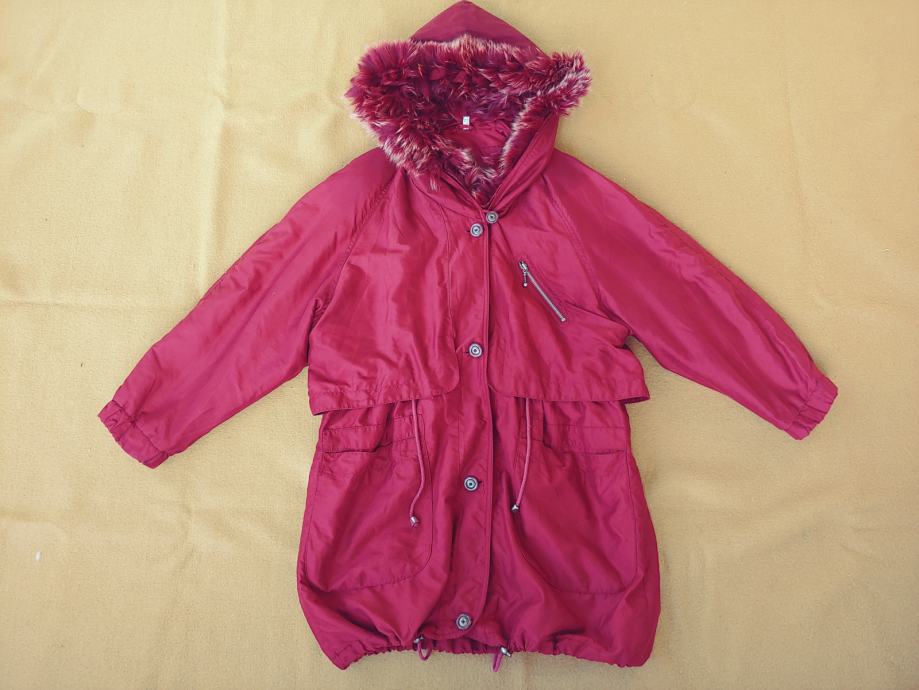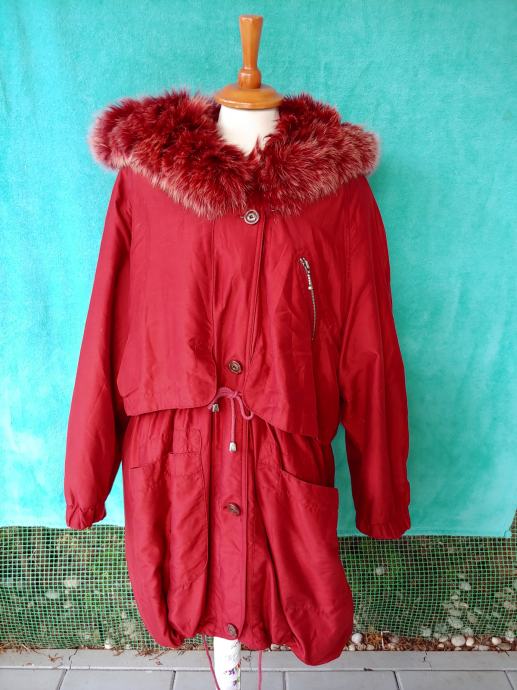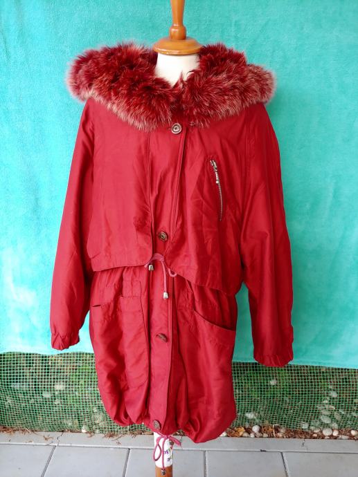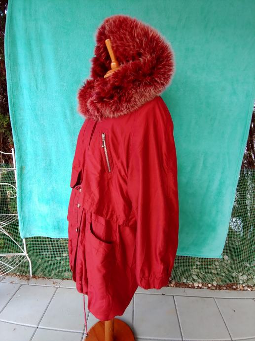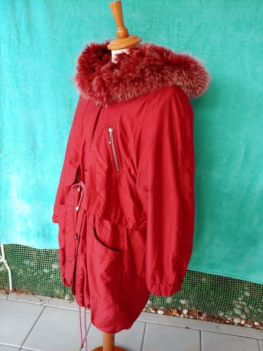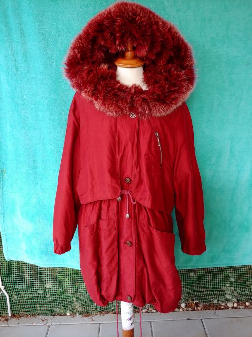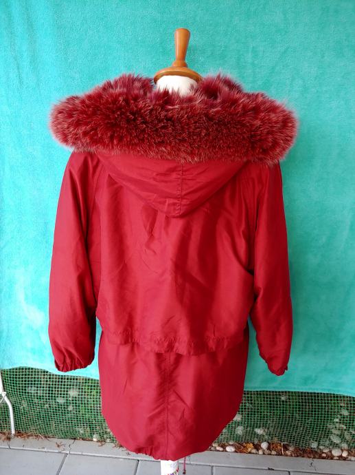 Ženska tamno crvena jakna vel. 40 , M / L. Potpuno očuvana, u super stanju. Krzno oko kapuljače, topla, zimska.