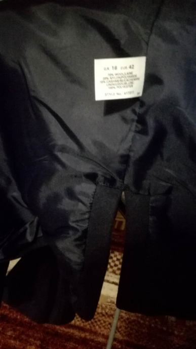 Materijal: 70% vuna, 10% kašmir, 20% poliester. Ima dva šlica sa strane. Jakna je nenošena ali ju treba malo prepeglati.