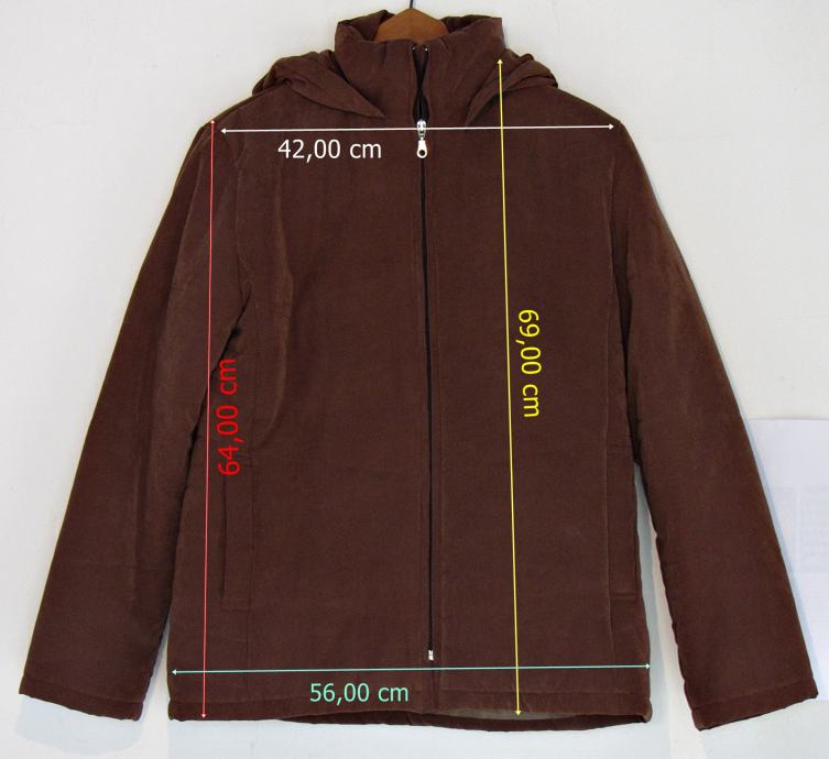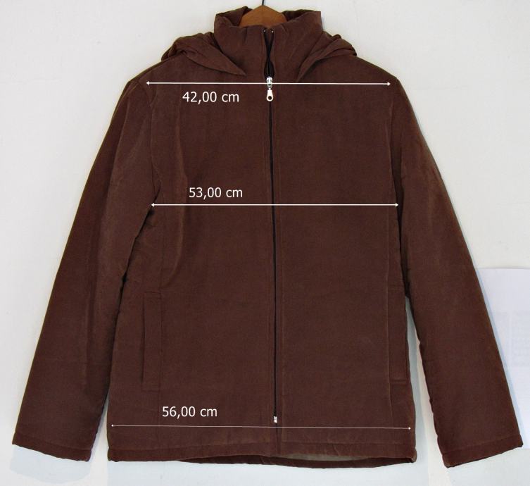 Veličina na jakni je 38, ali je ipak nešto veća, stvarne veličine naznačene su na slikama.