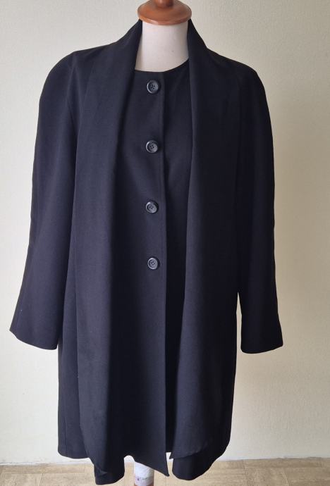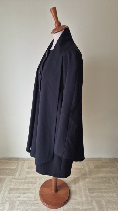 Prodajem elegantni ženski crni baloner sa priševenim šalom iznad ovratnika, veličine 40/42. Izrađen je kod krojača u Zagrebu, vrlo praktičan za prijelazno razdoblje. Korišten, ali u super stanju, idealno za poslovni ili svakodnevni stil.