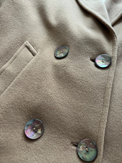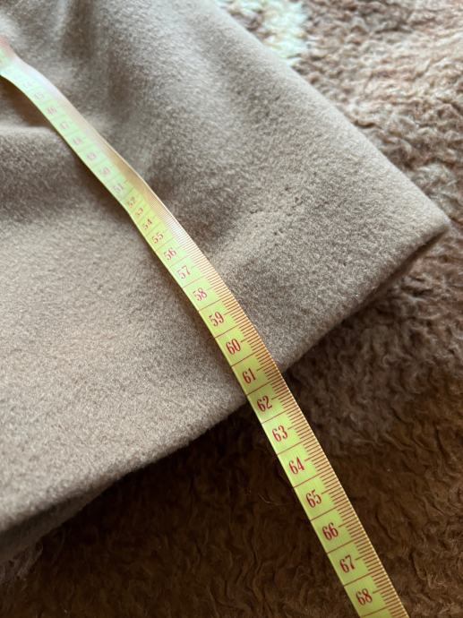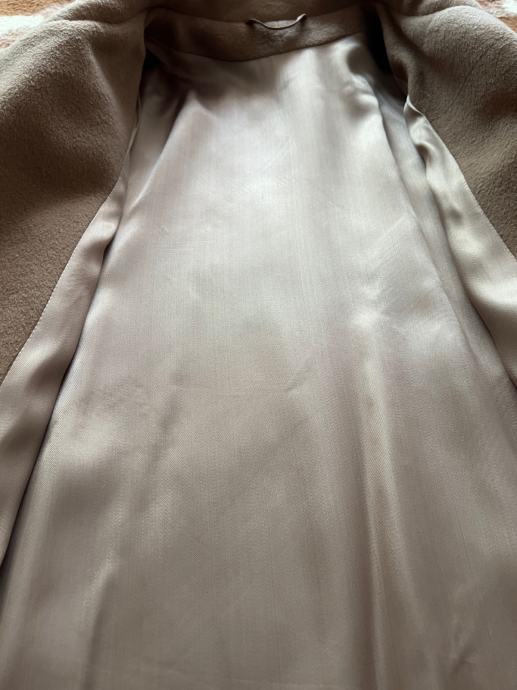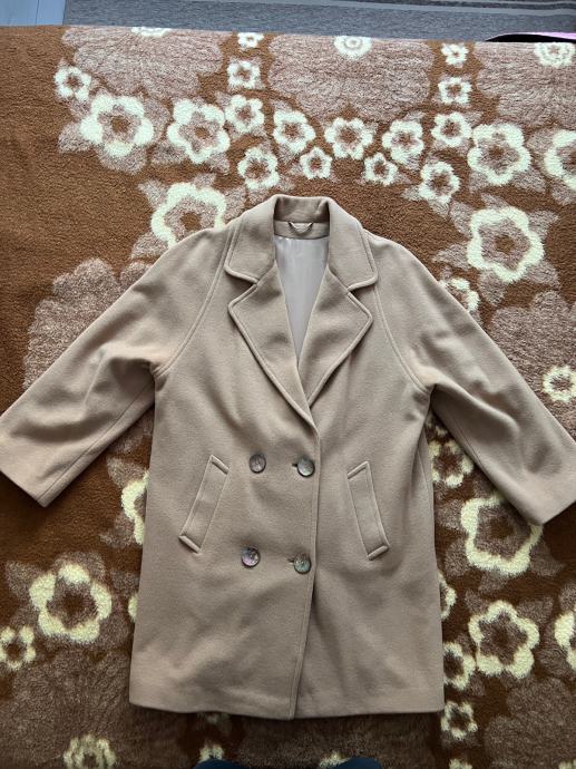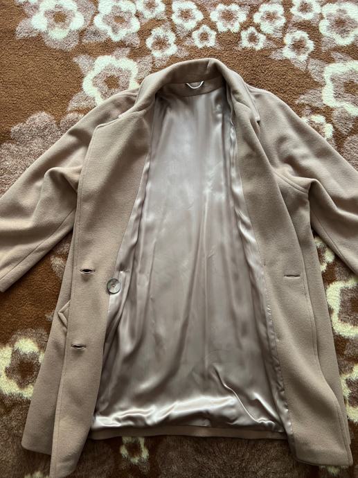 Kaput je nošen, ali je u izvrsnom stanju. Veličina ne piše koja je, ali po mjerama mislim da bi trebao biti 50-52. Svakako provjerite mjere na slikama prije kupnje.