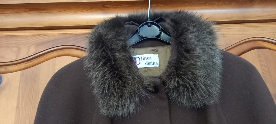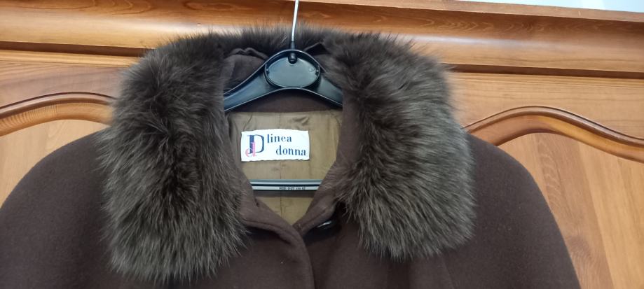 Made in Italy. Kupljen u Italiji davno. Obučen 3 puta. Trapezastog kroja, malo iznad koljena. Prekrasna pelica, nisam sigurna jeli prava ili umjetna, izgleda kao prava, ali mislim da nije.