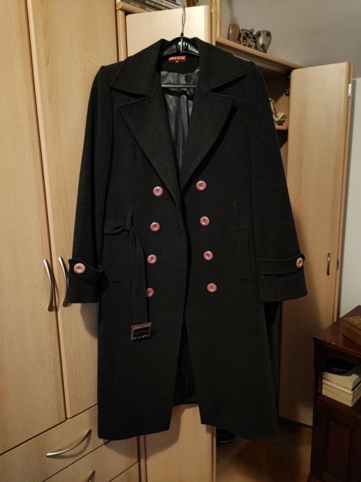 Ženski kaput, kašmir, vel 44, tamno siva, malo nošen.
