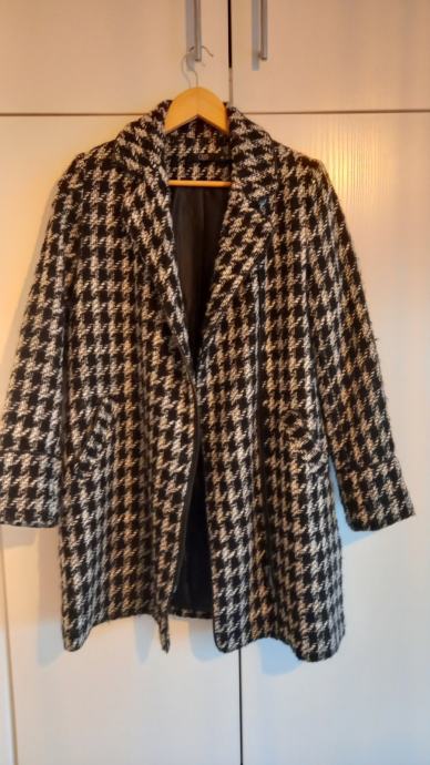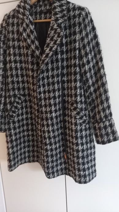 Crno bijeli ženski kaput, broj 42, ali je manji "kalup" tako da je br.40.dim rukava 60cm