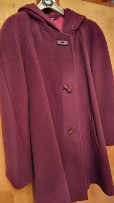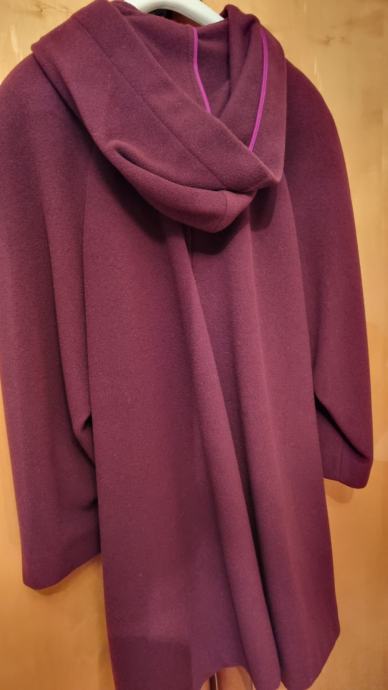 Prodajem kaput sa kapuljačom, pelerina kroj, vel.44(talijanski broj), 100% vuna, bordo boja. Kaput nije nošen.