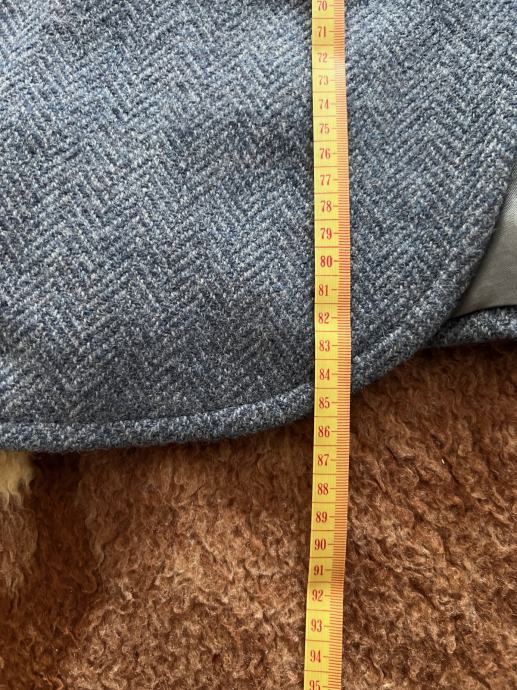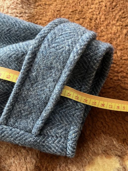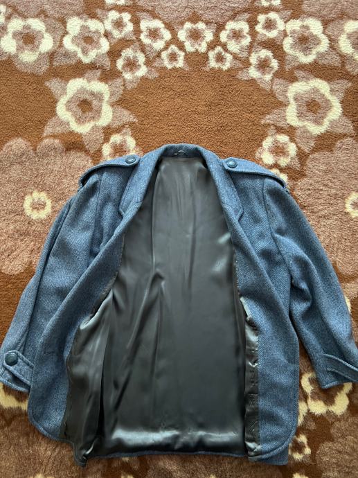 Kaput je nošen, ali je u izvrsnom stanju. Veličina ne piše koja je, ali po mjerama mislim da bi trebao biti 50-52. Svakako provjerite mjere na slikama prije kupnje.