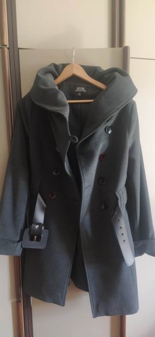 Prodajem ŽENSKI kaput otkačenog dizajna, sa remenom i većim ovratnikom.