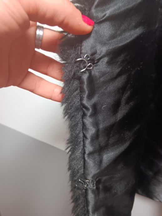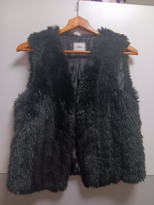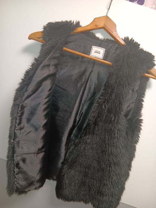 Prodajem ženski prsluk od umjetnog krzna u crnoj boji, veličine 34. Prsluk ima gusti, mekani krzno izvana te glatku satinsku podstavu iznutra. Zatvara se s prednje strane pomoću malih metalnih kopči. Marke Pimkie.
