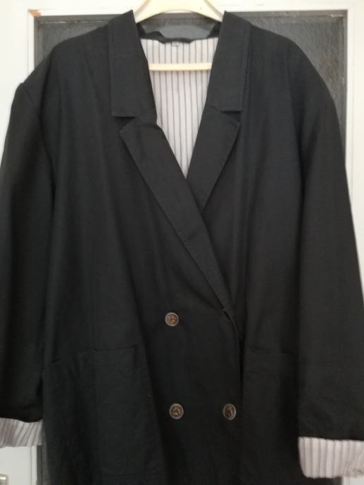 Lagani platneni sako crne boje, za toplije vrijeme, ravni kroj, dva džepa, pamuk izvana, svilenkasta podstava, veličina 42, kao nov