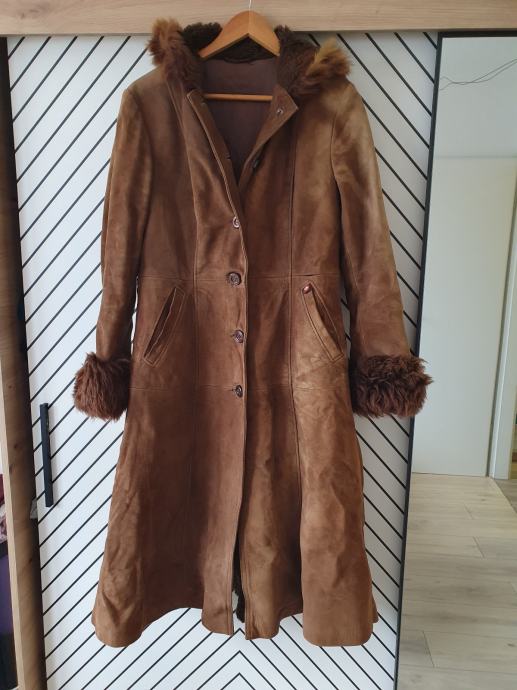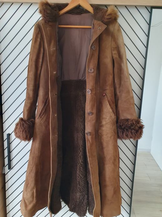 Ženski dugi kožni kaput iz 80-ih. Brušena koža. Nošen svega nekoliko puta.