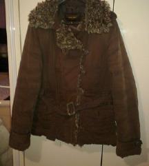 5. jakna, br 38, tankerica smeđa na kopčanje za jesen-zimu, sa mucastim okovratnikom i gurtnom koja kad se stegne naglašava struk! - 100kn