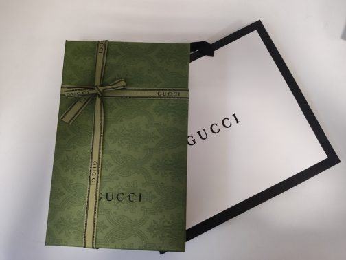 U kompletu: originalna papirnata vrećica, kutija, vrpca