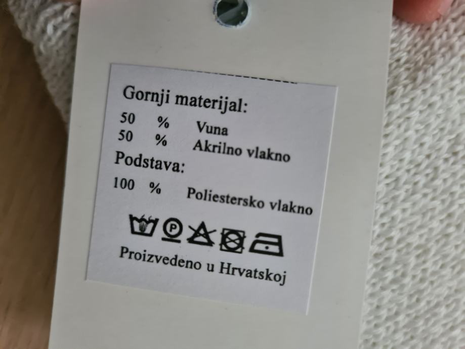 Materijal je 50% vuna, 50% akrilno vlakno.