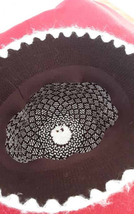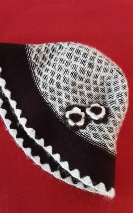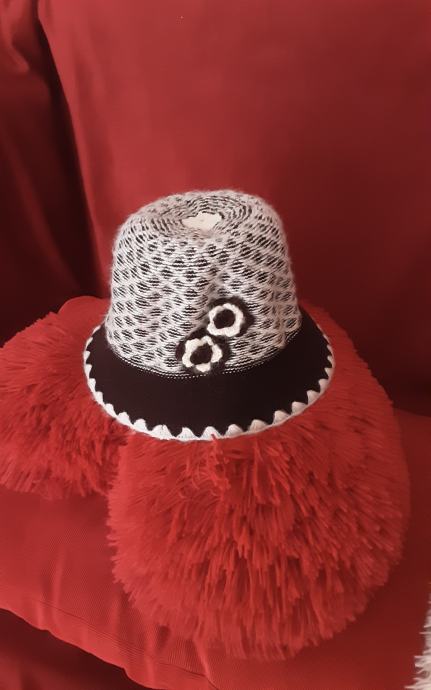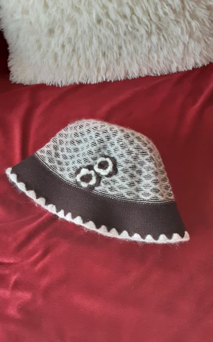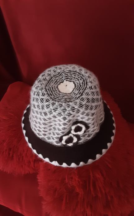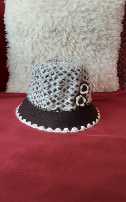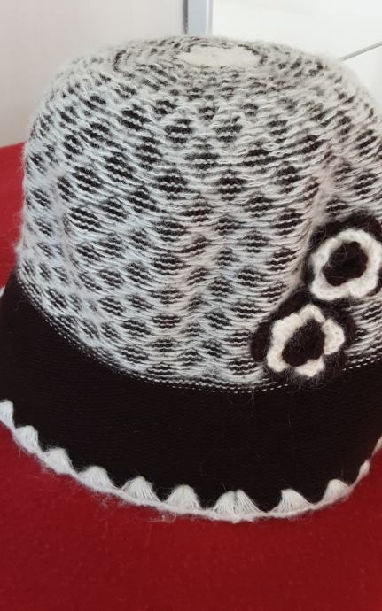Sesir vuneni, ukrasen cvijecem. Opseg glave 58 cm. Topao, mekan, nov i nenosen.