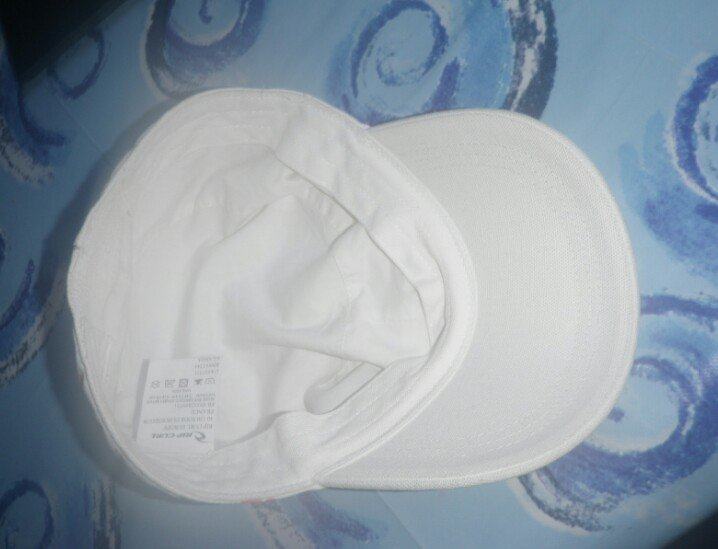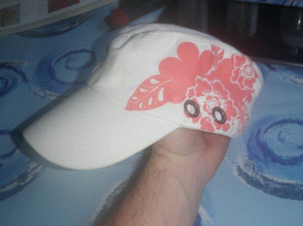 Kapa je bijele boje sa cvjetnim uzorkom na jednoj strani