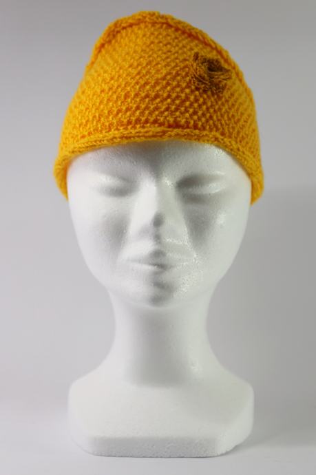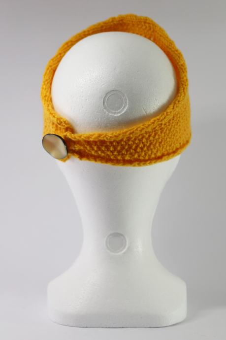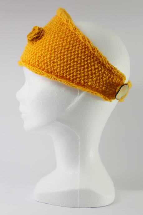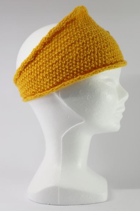 Ručno izrađena ženska bandana - šal za glavu - od žute vune.