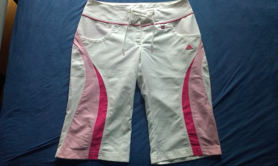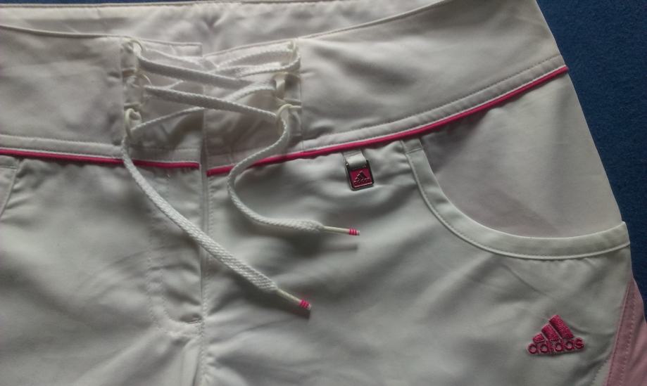 - Adidas - Odlično stanje! Iznimno lagane. Bijele sa rozim detaljima. Veličina 36/38, odnosno, S/M. Dužina hlača je oko 59 cm, a širina u struku oko 40 cm. --- 3€