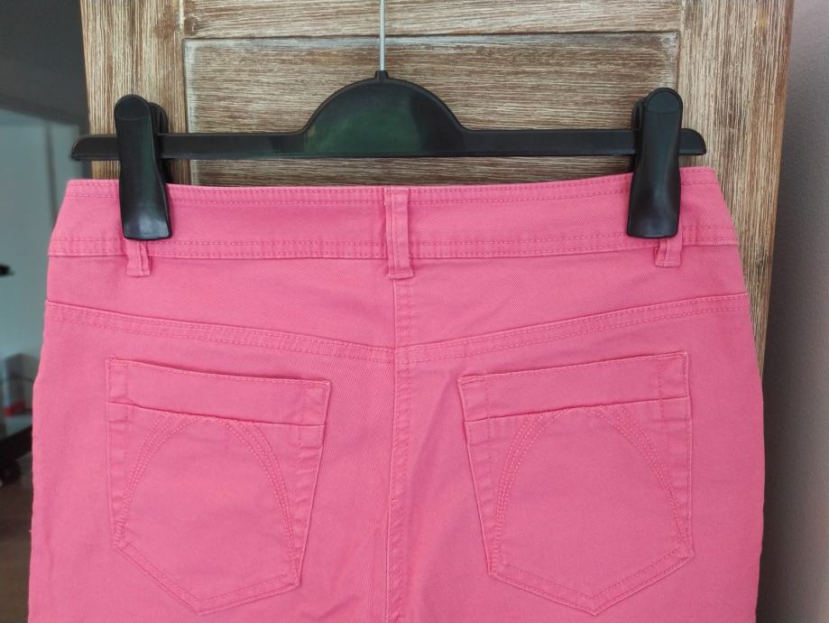 Prodajem capri hlače br.38 roza boje od kepera (pamuk) , novo bez etikete, po cijeni od 5 eura. Dimenzije su: