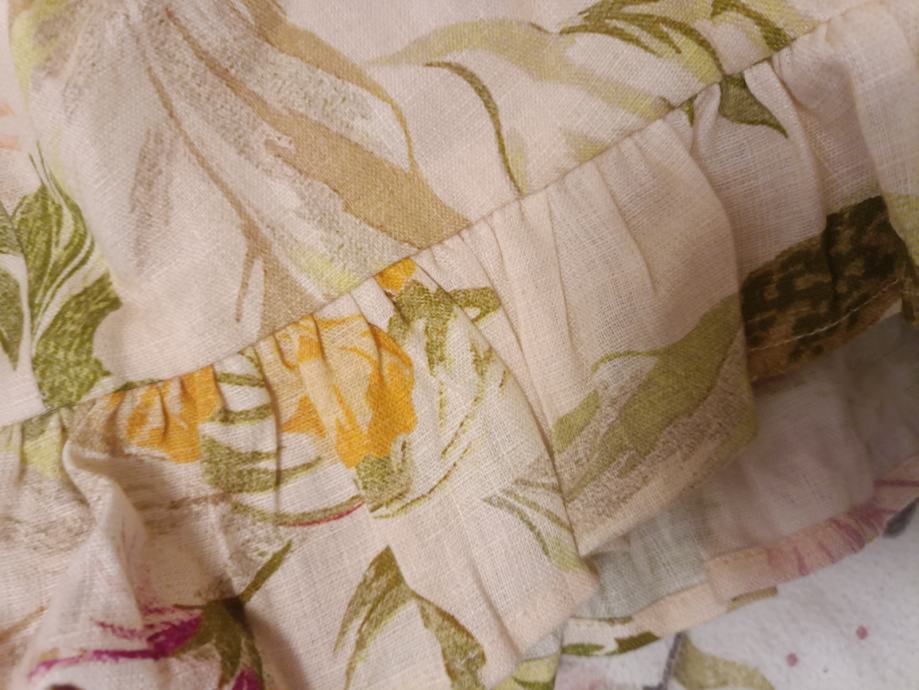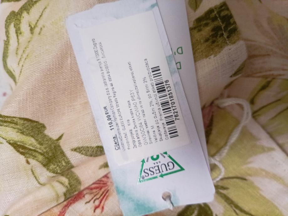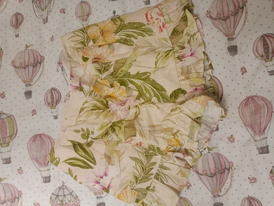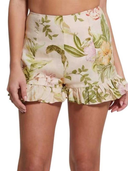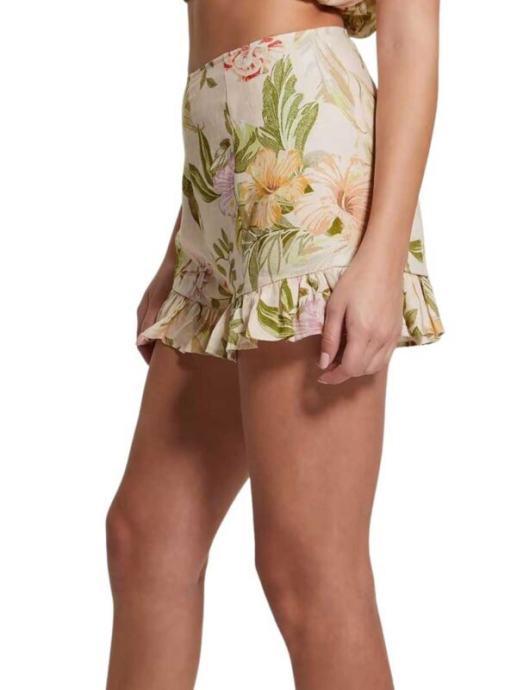 Guess Mayara lanene ženske kratke hlače. Kratke nogavice s volanima. Tropski print.